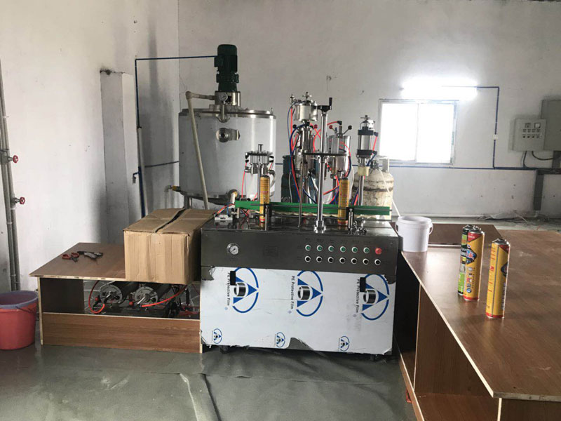 2、整由白料灌裝機,黑料灌裝機,封口機,二甲醚充氣機,丙丁烷充氣機,壓螺紋蓋機組成。